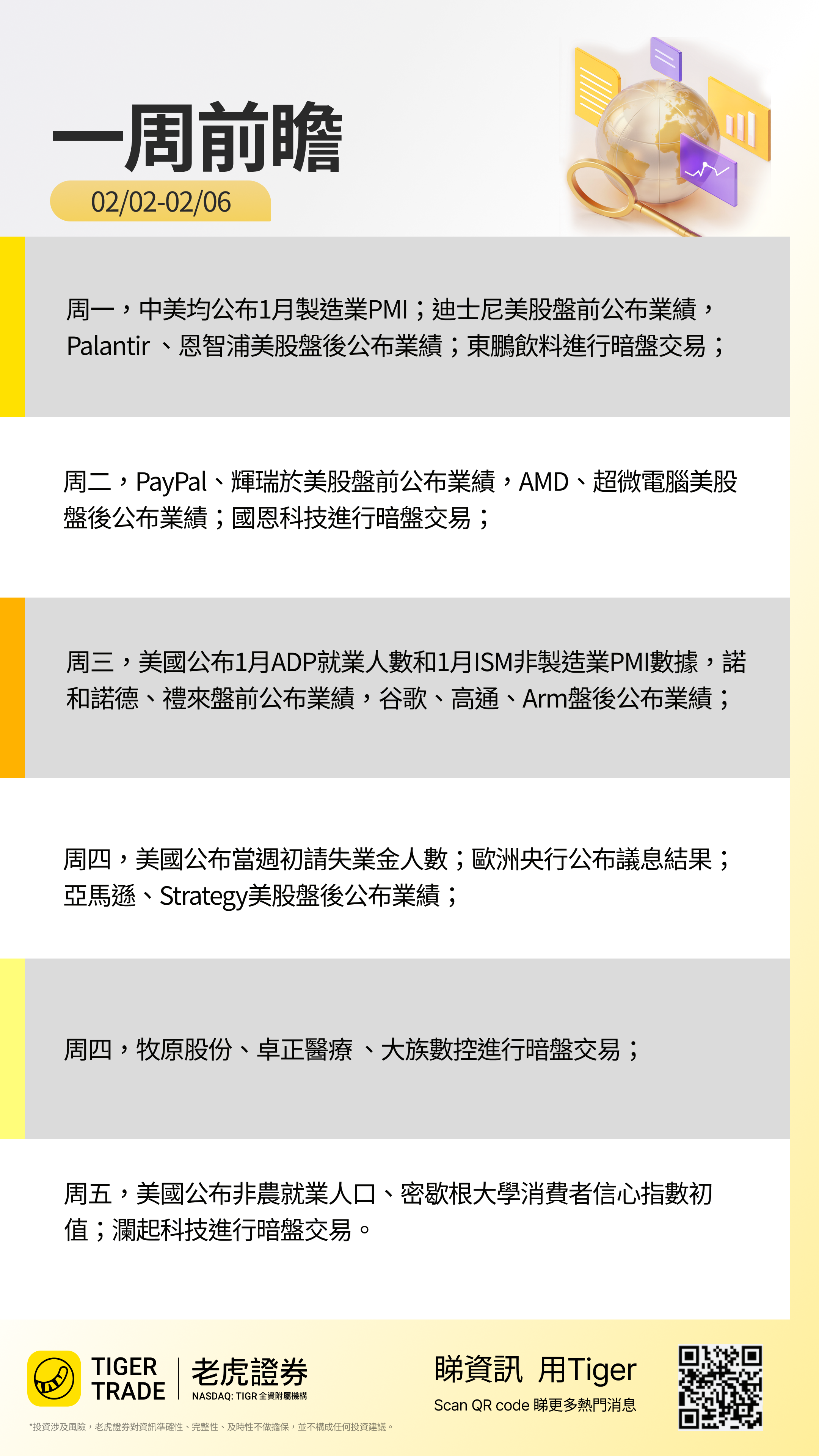 经济数据:中国将公布1月RatingDog制造业PMI,美国将公布1月ISM制造业PMI。