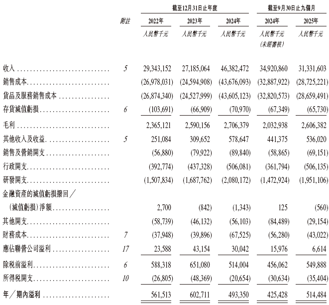 同期净利润分别为 5.62 亿元、6.03 亿元、4.93 亿元、5.14 亿元,净利率 1.9%、2.2%、1.1%、1.6%,呈阶段性回落再回暖。2024 年营收大增但净利下滑,源于出货量增长推高销售成本、原材料涨价及研发投入增至 20.8 亿元;2025 年前三季度净利修复,得益于原材料降价与成本管控优化。