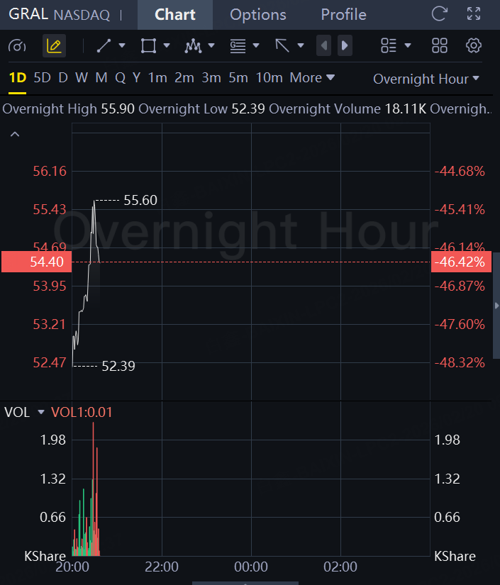 GRAIL (GRAL) said late Thursday that topline NHS-Galleri results from 142,000 UK participants show the Galleri test reduces Stage IV cancer diagnoses and increases early-stage I and II detection. The trial missed its primary Stage III and IV reduction endpoint but demonstrated positive trends, including over 20% fewer Stage IV diagnoses in rounds two and three for 12 deadly cancers, such as colorectal, lung, and pancreatic, the company said. Shares of the company were down more than 46% in overnight trading.