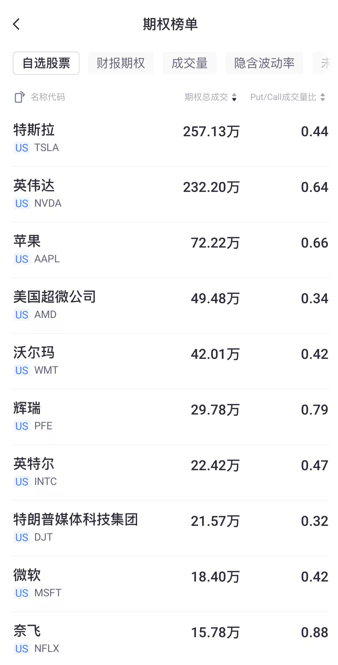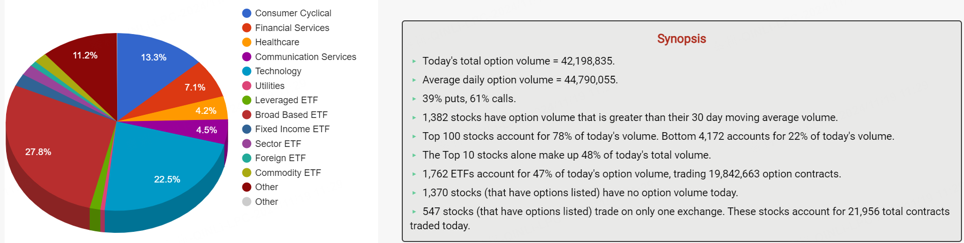 期权市场总成交量达42,198,835张合约,低于每日平均期权交易量,其中看涨期权占比61%。