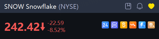 Snowflake forecast fourth-quarter product revenue above analysts' estimates but falls short of lofty investor expectations for stronger growth, sending its shares down 8.5%.