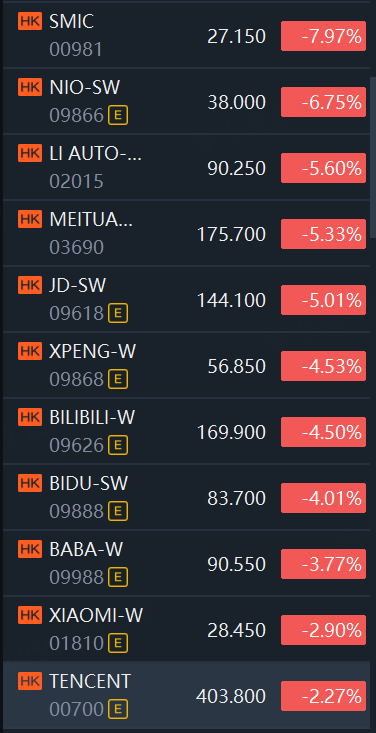 Other significant movements included Xiaomi, which fell by 2.90%, and Baidu, which dropped by 4.01% after releasing new AI technologies at the World 2024 Conference. CITIC Securities declined by 2.87% amid broader losses in Chinese brokerage stocks, with Huatai Securities down by 5.27% and CSC Financial falling by 6.08%. China Hongqiao saw a sharp decline of 8.70% despite a positive research report from HSBC Global Research. NIO also experienced a significant drop of 6.75%.