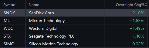 24H|Storage Stocks Jump, SanDisk and Micron up 2%; Lululemon, Oklo down 2%; Rocket Lab down 4%