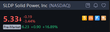 Solid Power, Inc rose 17% in premarket trading after unveiling a strategic collaboration with Samsung SDI and BMW to pursue development and validation of a demonstration vehicle powered by all-solid-state battery technology.