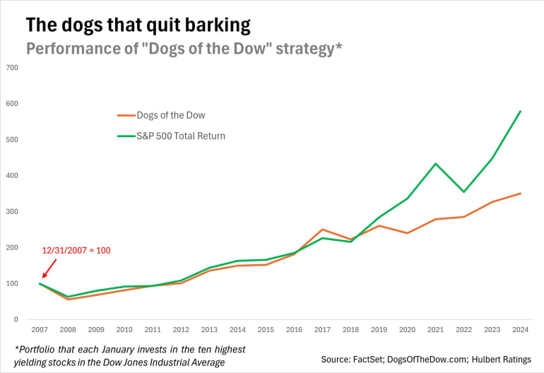 今年,“Dogs of the Dow”策略再一次落后于市场表现。