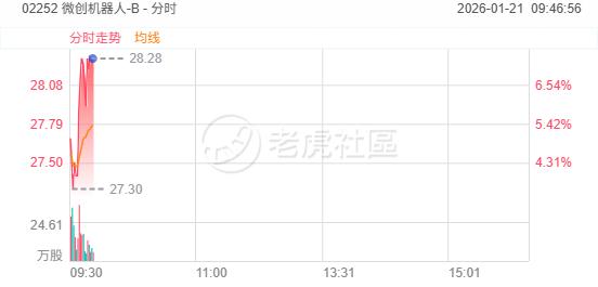 1月21日,港股机器人概念股盘初上扬,微创机器人-B涨超7%,华虹半导体涨超5%,优必选涨超4%,极智嘉-W涨超3%。