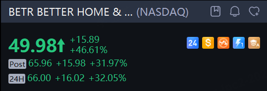 Better Home & Finance Holding shares soared 46.6% on Monday after Eric Jackson said his hedge fund had bet on the stock, echoing the retail-driven rally he kicked off in Opendoor Technologies Inc. in July. The shares jumped another 32.1% in overnight trading.