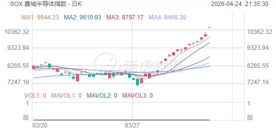 4月24日,费城半导体指数连涨18天,现大涨逾4%。成分股中,英特尔绩后暴涨超25%,AMD、ARM、高通大涨逾10%,美光科技涨超4%,台积电、阿斯麦涨超3%。