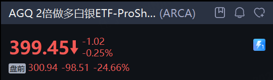现货白银一度暴跌超17%,现货黄金一度跌超7%。相关概念股盘前走低, 2倍做多白银ETF-ProShares 暴跌超24%, 白银ETF-iShares 跌超12%, 赫克拉矿业 跌超9%, 科尔黛伦矿业 跌超8%, 泛美白银 、 哈莫尼黄金 跌超7%,纽曼矿业 跌超5%, 南方铜业 跌近5%, 麦克莫兰铜金 跌超4%。