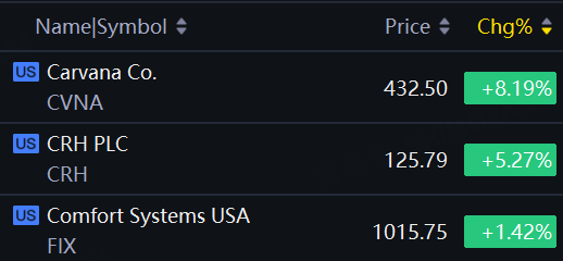 Joining the online used-car retailer on the premier U.S. stock-market index SPX are building-materials maker CRH PLC as well as Comfort Systems USA, which provides mechanical and electrical services for commercial and industrial buildings. Shares of CRH rose 5.3% while Comfort Systems gained 1.4%.