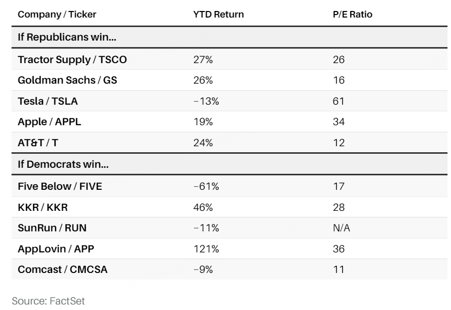 文章源自Barron's《10 Stocks to Own if Democrats or Republicans Win Big in November》