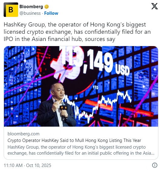 HashKey Group has filed for an initial public offering (IPO) in Hong Kong, aiming to list “as soon as this year,” unnamed sources told Bloomberg. The firm runs Hong Kong’s largest licensed crypto exchange, HashKey Exchange.