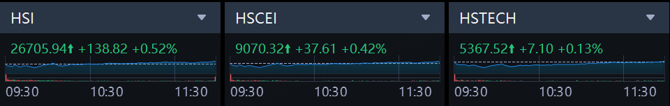 Hong Kong stocks closed higher on Monday. The Hang Seng Index rose by 0.52%, the Hang Seng China Enterprises Index rose by 0.42%, the Hang Seng Tech Index rose by 0.13%.