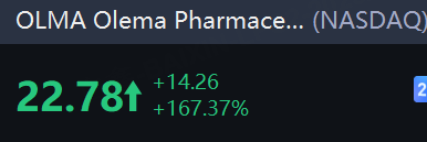 Shares of Olema Pharmaceuticals, Inc. rocketed 167% in morning trading, triggering a circuit breaker. This explosive movement comes on the heels of a highly positive analyst update from JPMorgan.