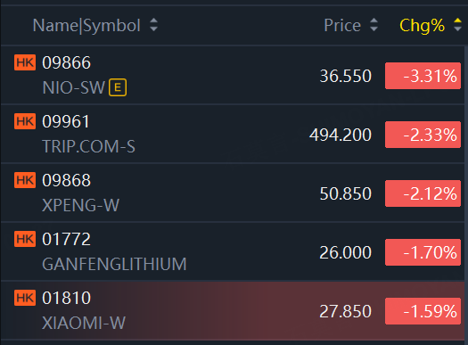 XPENG-W experienced a drop of 2.12%. The company reported a narrower loss and increased revenue in Q3, with a record gross margin. XPeng's performance indicates a positive trend in reducing losses and achieving higher delivery targets.