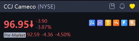 Cameco shares sank 4.5% in pre-market trading on Wednesday following the release of its third-quarter earnings report, which fell short of analyst expectations. The uranium producer's disappointing results have sparked concerns among investors about the company's near-term performance.