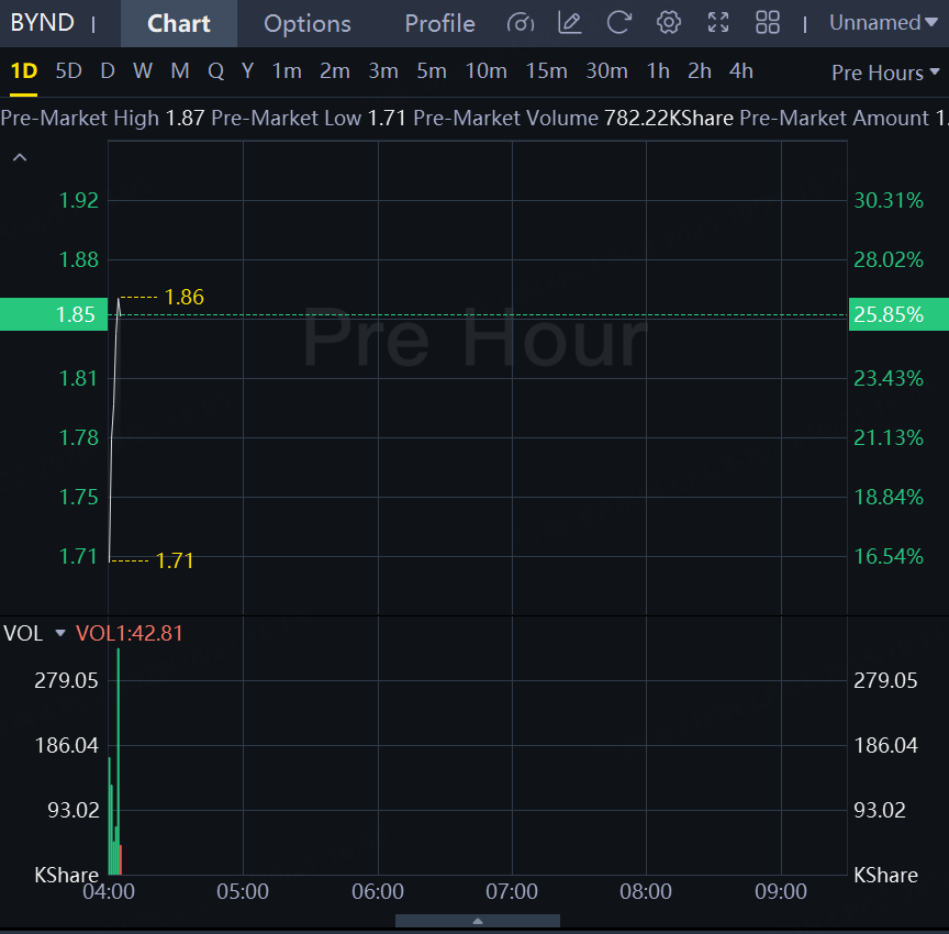 Beyond Meat, Inc. (BYND) continues its extraordinary rally with a 26% surge in pre-market trading on Tuesday. This follows Monday's dramatic intraday rally that saw the stock more than double in value, soaring 127.7%. The plant-based meat producer's stock has been on a rollercoaster ride, driven by a combination of factors including a significant debt restructuring and what appears to be a massive short squeeze.