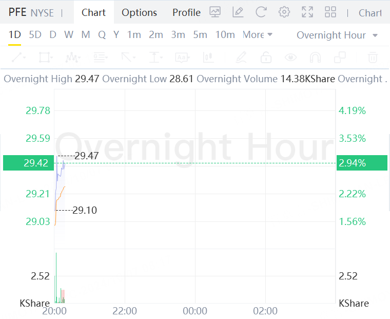 Pfizer shares rose 3% in overnight trading.