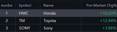 U.S. President Donald Trump struck a trade deal with Japan that lowers tariffs on auto imports and spares Tokyo from punishing new levies on other goods in exchange for a $550 billion package of U.S.-bound investment and loans. Toyota rose 13% in premarket; Honda rose 10%; Sony rose 4%.