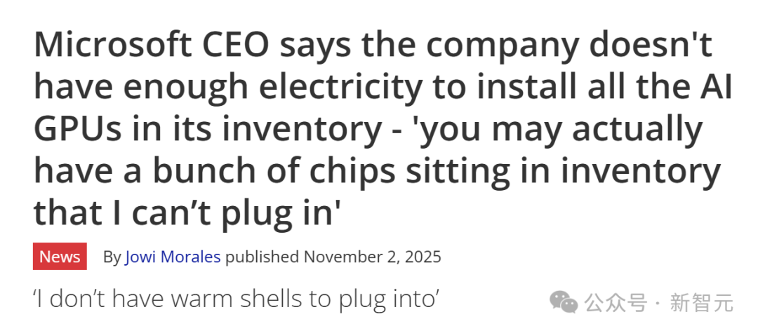 在纳德拉看来,目前的核心瓶颈不在于缺少芯片供应,而是缺少「热壳」——