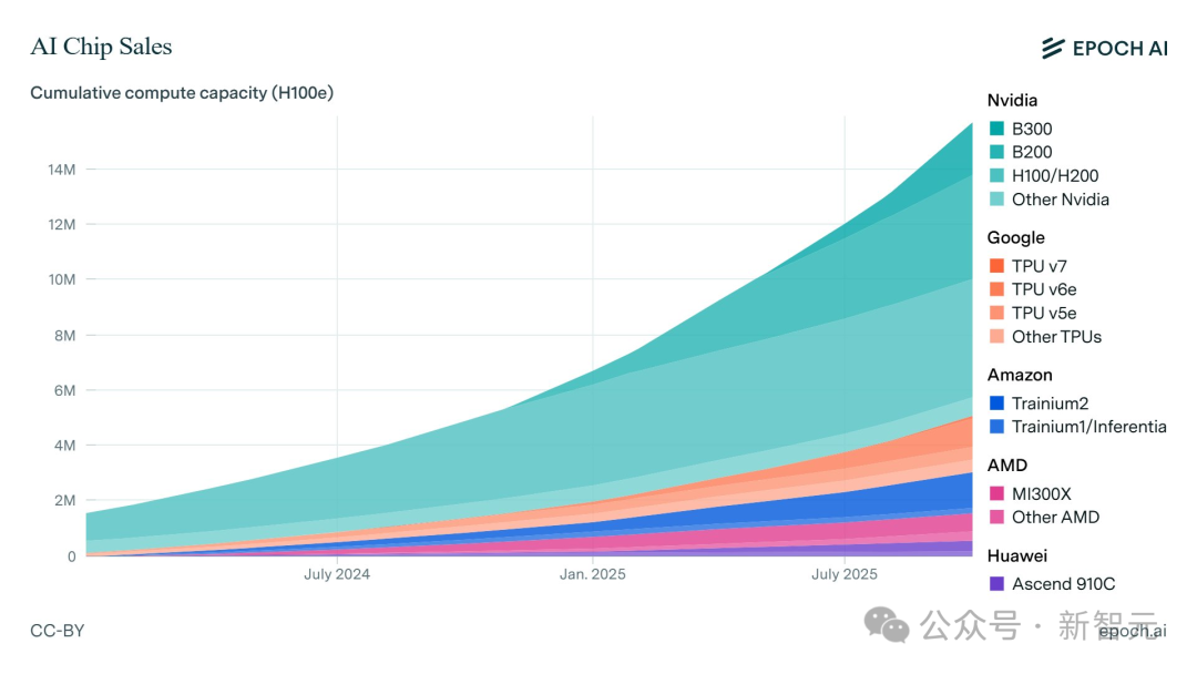 对此,顶级研究机构Epoch AI追踪了全球各大主流芯片设计厂商每个季度的AI加速芯片产量,揭示了这场军备竞赛的底牌。