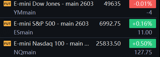 As of Jan 16, U.S. stock index futures are firm, led by tech-heavy benchmarks, with Nasdaq 100 futures up 0.50%, S&P 500 futures up 0.16%, and Dow futures down 0.01%. Futures indicate a modestly risk-on tone as investors digest strong semiconductor-related signals and steady mega-cap positioning. The setup points to continued leadership from AI and chip-linked names, while banks and select defensives may lag into the open. Positioning remains sensitive to policy headlines and earnings updates across large financials and tech.