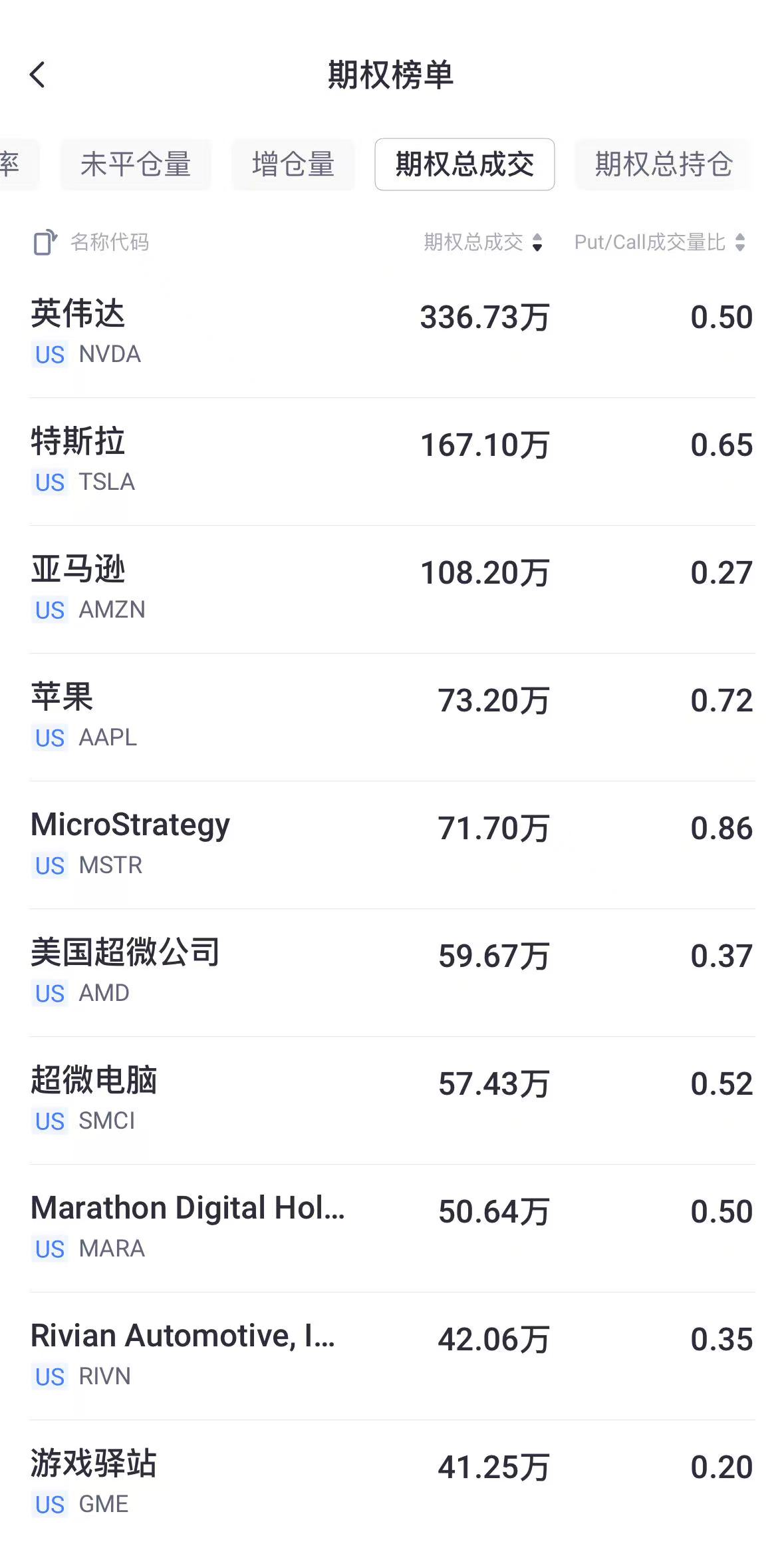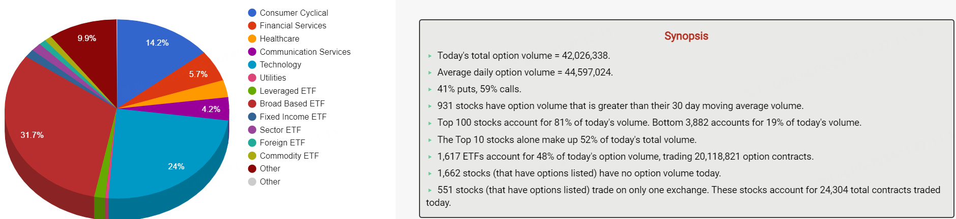 期权市场总成交量达42,026,338张合约,低于每日平均期权交易量(44,597,024),其中看涨期权占比59%。