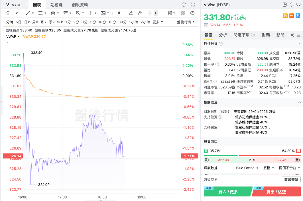 盘后股价跌1.71%,报326.14美元。