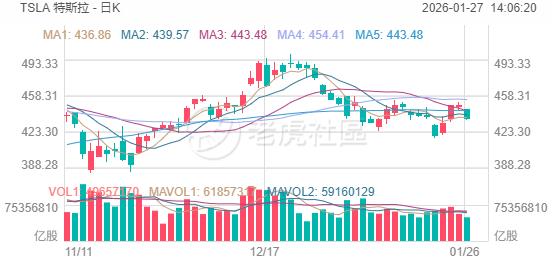 周一,特斯拉股价在439美元左右波动。