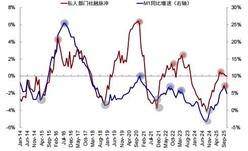 图表:信用周期(高点6月)领先M1 4个月(10月)