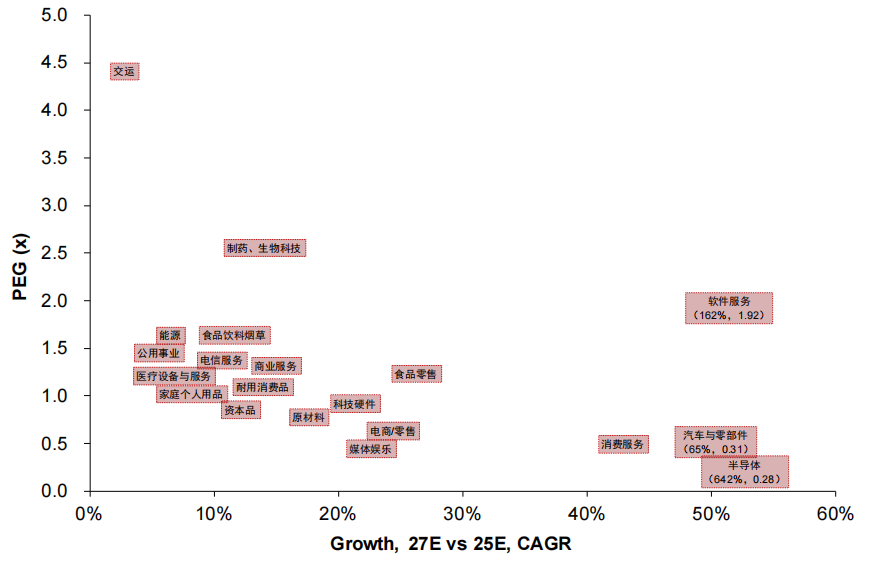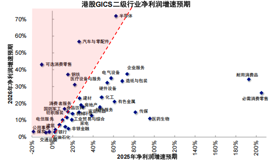 图表:半导体、汽车零部件与钢铁等板块2026年净利润增速较2025年提升