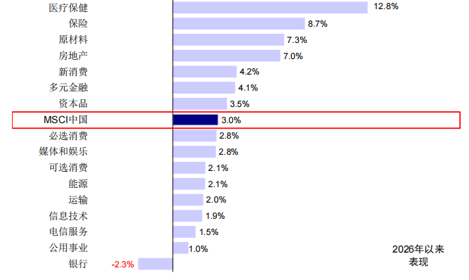 ► 分红:用以均衡配置对冲波动,港股更具优势。虽然我们认为分红板块难以复制2024年的大幅跑赢行情,毕竟2024年的强势源于信用整体坍塌式收缩,而2026年虽然不似2025年强劲,但好坏参半。但考虑到地产、消费板块仍较为疲软,分红板块可作为均衡配置的对冲选择,港股至少从股息率角度具备优势。近期分红板块表现偏弱,主要与人民币走强、保险配置节奏以及国债利率未下行等因素相关(《股市和汇率谁“错”了?》)。