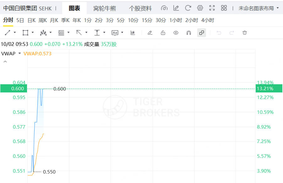 10月2日,港股黄金股盘初走强,中国白银集团涨超13%,紫金黄金国际涨超10%,赤峰黄金涨超7%,潼关黄金涨超5%,灵宝黄金涨超4%,中国黄金国际涨超3%,山东黄金、紫金矿业涨超2%。