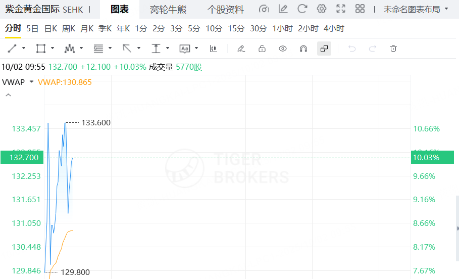 港股异动 | 黄金股盘初走强,紫金黄金国际涨超10%