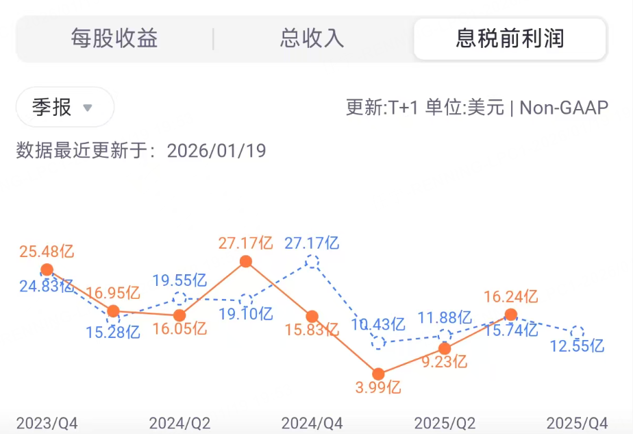 Non-GAAP规则下,息税前利润预计为12.55亿美元。