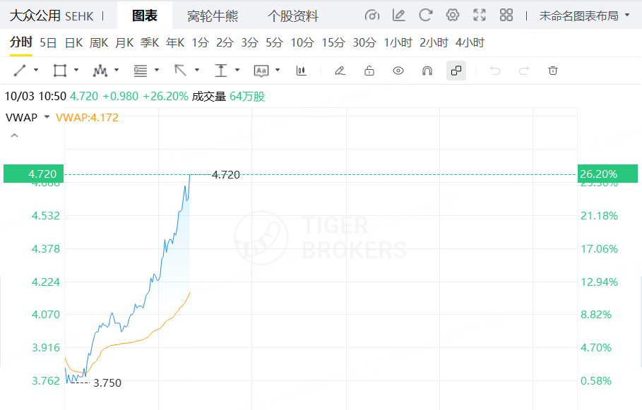 10月3日,港股大众公用盘中涨超26%,股价创历史新高。