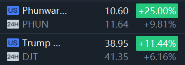 Trump-linked stocks jumped in overnight trading. Phunware, rose 9.8%; Trump Media & Technology rose 6.2%.
