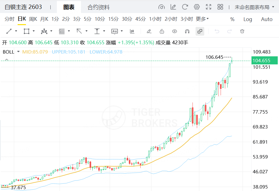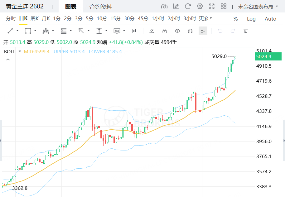 1月26日,现货黄金首次突破5000美元/盎司。现货白银首次突破106美元/盎司,日内涨超3%。