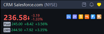 Shares of Salesforce.com rose about 3% in overnight trading.