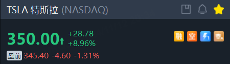 特斯拉盘前弱势震荡,截至发稿跌超1.3%。此前五连阳,本月涨幅超40%。
