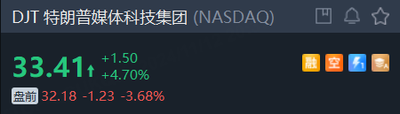 特朗普媒体科技集团跌3.68%。该公司首席财务官申请出售价值1300万美元的股票。