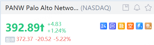 财报公布后,Palo Alto Networks的股价在盘后交易时段下跌了5.22%,交投于372.37美元附近。