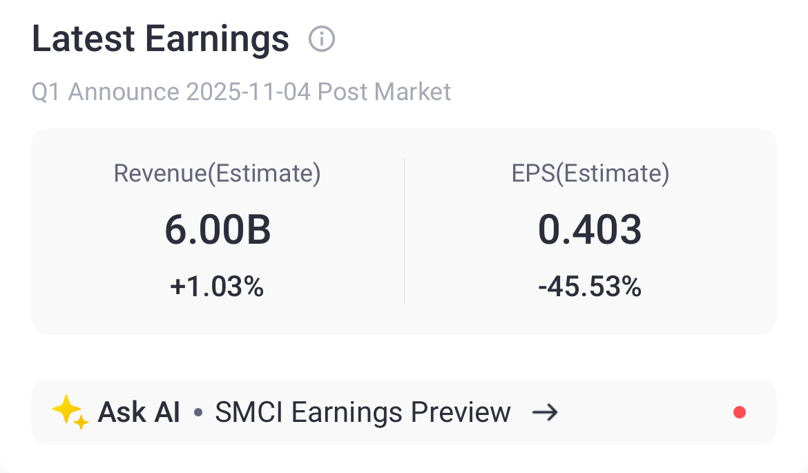 SUPER MICRO COMPUTER INC (SMCI) plans to release its Q1 FY2026 earnings report after the market closes on November 4. The market is focusing on order conversion for AI systems and racks, gross margin continuation, and supply chain assurance, with a predominantly bullish view from institutions.