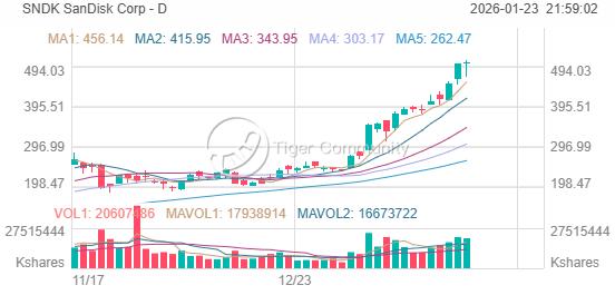 本月早些时候,在 CES 展会上,英伟达首席执行官黄仁勋提到内存需求正在上升,并将存储形容为一个“几乎无人满足的市场”,随后 Sandisk 股价大幅走高。
