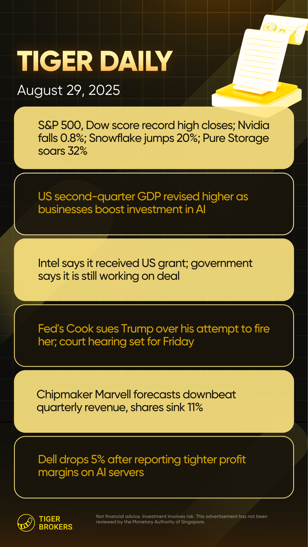 Best Buy - Best Buy fell 3.7% after the electronics retailer posted better-than-expected fiscal second-quarter earnings and revenue but left investors disappointed it didn’t raise fiscal-year guidance.