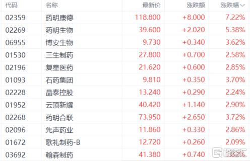 港股市场同样热度不减,创新药、医药外包等核心板块同步拉升。截至发稿,龙头股药明康德涨幅超7%,三生制药、晶泰控股、石药集团、博安生物、云顶新耀、复星医药、药明合联等纷纷跟涨。