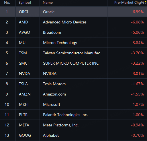 Big Tech Stocks Fell; Oracle Down 7%; AMD Down 6%; Broadcom Down 5%; Micron, TSMC, SMCI And Nvidia Down 3%