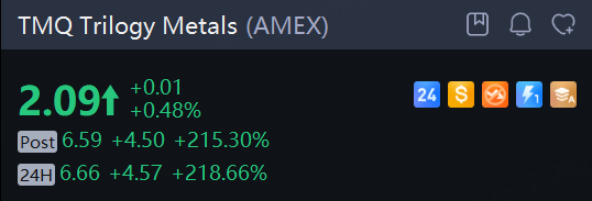 Trilogy Metals shares soared 218.7% in overnight trading.