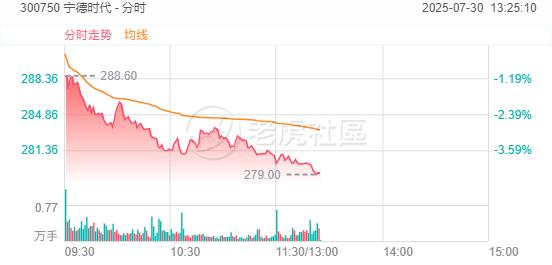 7月30日,宁德时代午后AH股持续下挫,A股跌超4%、H股跌超7%;公司将于今日盘后公布上半年业绩。