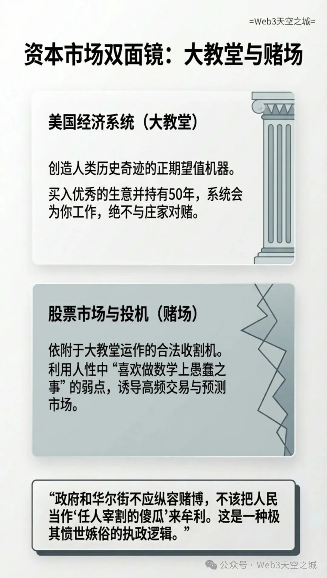 “美国经济是一个宏伟的殿堂,但它附带了一个利用人类天性中赌博欲望的‘赌场’。”